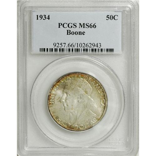 1934 50C Boone MS66 PCGS. Streaks of orange-gold race