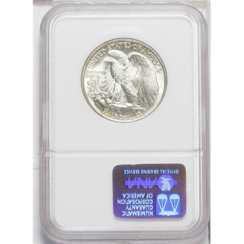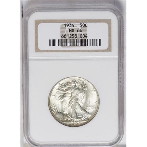 <B>1934<50C> MS66 NGC.</B></I> Quite lustrous and nicely struck with pale champagne patina. An untoned depression is noted on the sun, as are two short marks in the right obverse field.