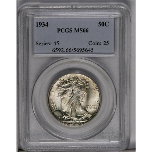 <B>1934<50C> MS66 PCGS.</B></I> Frosty luster illuminates the virtually pristine surfaces. Well struck with charcoal-gray coloration and a few specks of darker patina near the peripheries.