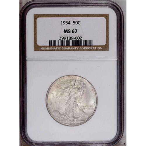 1934 50C MS67 NGC. Boldly struck, if slightly weak on 1934[50C] MS67 NGC.