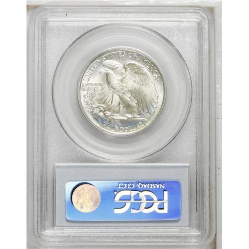 <B>1934<50C> MS67 PCGS.</B></I> Crisply struck for this issue with wisps of gold and blue-violet patina on both sides. Quite lustrous with no real distractions. PCGS has certified just seven finer examples (8/06).