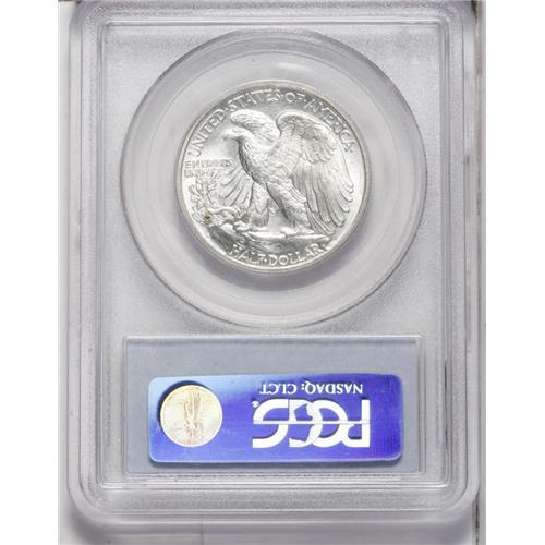 <B>1934<50C> MS67 PCGS.</B></I> This is a sharply struck Superb Gem with brilliant silver surfaces and light gold toning, more visible on the reverse. The central obverse details are sharply defined, with some weakness at the central reverse. Only seven finer pieces have been certified by PCGS (8/06).<BR><I>From The Big Tex Registry Set of Walking Liberty Halves.</B></I>