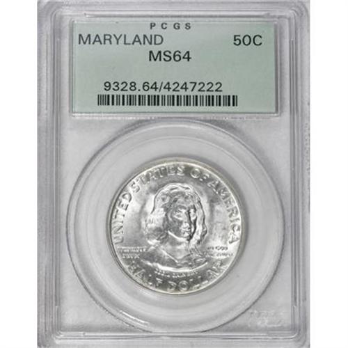 <B>1934 50C Maryland MS64 PCGS.</B></I> PCGS Population (1688/1783). NGC Census: (1028/1874). Mintage: 25,015. Numismedia Wsl. Price for NGC/PCGS coin in MS64: $172. (#9328)<BR><BR><b>Shipping:</b> Coins & Currency (<a target="_blank" href="http://www.heritageauctions.com/common/shipping.php">view shipping information</a>)