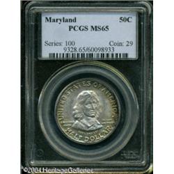 1934 50C Maryland MS65 PCGS. Lustrous surfaces rev <B>1934 50C Maryland MS65 PCGS.</B></I> Lustrous surfaces reveal multicolored toning along portions of the borders on both sides. Well struck, and virtually free of any significant marks. <BR><BR><B>Important notice:</B> Heritage usually auctions material at the rate of 200-250 lots per hour. On some occasions eBay Live bid software or the Internet may not be able to keep up with the pace of the auction. We recommend placing a realistic absentee bid now as insurance to avoid disappointment. Occasionally the auctioneer may eliminate or reject an eBay Live bid, and the auctioneer may also reopen a lot after the close of the eBay live bidding (usually because we missed an audience bid), and may reject your bid even if it shows you as the winning bidder. By bidding via eBay Live, you agree that Heritage may award the lot to another bidder at its sole discretion under the circumstances described above or any other reasonable circumstances. Since eBay bids are not shown to us until we open the lot on the floor, we treat those bids just like floor bids. In most cases the floor responds before the eBay bid is presented to us, due to Internet lag time, so for consistency we have made it a policy that floor bids are always considered first over tie eBay live bids. Also please note that all Heritage lots purchased through eBay Live carry a 20% Buyer's Premium. Please make sure you read the Terms and Conditions before you bid. This lot is being auctioned in conjunction with a live floor auction by Heritage Galleries & Auctioneers. All final auction and invoice information will be supplied by Heritage Galleries & Auctioneers, and all other information should be considered preliminary. Lot:7907