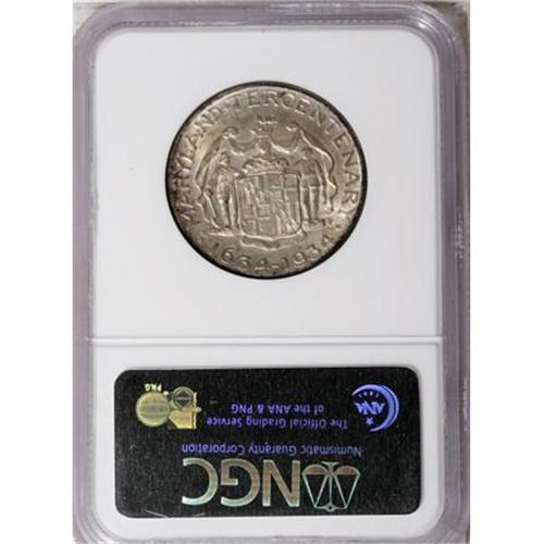 <B>1934 50C Maryland MS66 NGC.</B></I> NGC Census: (554/70). PCGS Population (514/43). Mintage: 25,015. Numismedia Wsl. Price for NGC/PCGS coin in MS66: $700. (#9328)<BR><I>From The Frank DuVall Collection of U.S. Commemoratives.</B></I><BR><BR><b>Shipping:</b> Coins & Currency (<a target="_blank" href="http://www.heritageauctions.com/common/shipping.php">view shipping information</a>\)