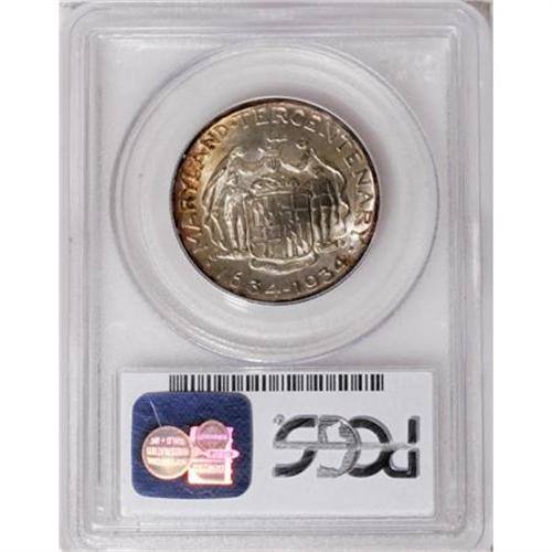 <B>1934 50C Maryland MS66 PCGS.</B></I> Fire-red toning endows the borders, but this Premium Gem is otherwise pearl-gray aside from a blush of mauve on the fisherman. Nicely struck and lightly abraded.<BR><I>From The Cary & Cheryl Porter Collection, Part Three.</B></I><BR><BR><b>Shipping:</b> Coins & Currency (<a target="_blank" href="http://www.heritageauctions.com/common/shipping.php">view shipping information</a>\)