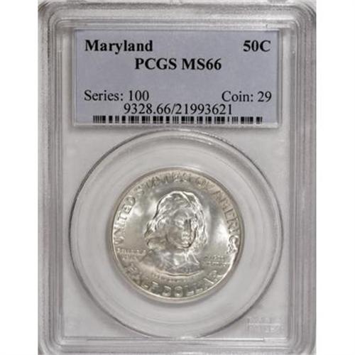 <B>1934 50C Maryland MS66 PCGS.</B></I> Brilliant luster radiates from each side, with nary a trace of discernible color. The eye appeal is tremendous for those who prefer their coins brilliant and untoned. PCGS has certified 43 coins finer (1/08).<BR><I>From The Southwest Collection.</B></I><BR><BR><b>Shipping:</b> Coins & Currency (<a target="_blank" href="http://www.heritageauctions.com/common/shipping.php">view shipping information</a>)