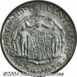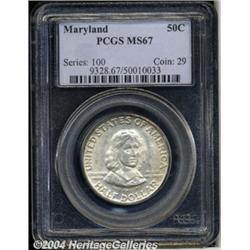 <B>1934<50C> Maryland MS67 PCGS.</B></I> Full, smooth, satiny textured luster blankets both sides of this silver tinged representative. Both sides are sharply struck with uncommonly few abrasions for the type. Population: 40 in 67, 0 finer (3/04).<BR><I>From The Del Rio Collection, Part One.</B></I> <BR><BR><B>Important notice:</B> Heritage usually auctions material at the rate of 200-250 lots per hour. On some occasions eBay Live bid software or the Internet may not be able to keep up with the pace of the auction. We recommend placing a realistic absentee bid now as insurance to avoid disappointment. Occasionally the auctioneer may eliminate or reject an eBay Live bid, and the auctioneer may also reopen a lot after the close of the eBay live bidding (usually because we missed an audience bid), and may reject your bid even if it shows you as the winning bidder. By bidding via eBay Live, you agree that Heritage may award the lot to another bidder at its sole discretion under the circumstances described above or any other reasonable circumstances. Since eBay bids are not shown to us until we open the lot on the floor, we treat those bids just like floor bids. In most cases the floor responds before the eBay bid is presented to us, due to Internet lag time, so for consistency we have made it a policy that floor bids are always considered first over tie eBay live bids. Also please note that all Heritage lots purchased through eBay Live carry a 20% Buyer's Premium. Please make sure you read the Terms and Conditions before you bid. </span></font></tr></table></td></tr></table>