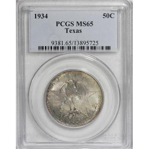 <B>1934 50C Texas MS65 PCGS.</B></I> PCGS Population (1040/336). NGC Census: (741/374). Mintage: 61,463. Numismedia Wsl. Price for NGC/PCGS coin in MS65: $292. (#9381)<BR><I>From The Frank DuVall Collection of U.S. Commemoratives.</B></I><BR><BR><b>Shipping:</b> Coins & Currency (<a target="_blank" href="http://www.heritageauctions.com/common/shipping.php">view shipping information</a>\)