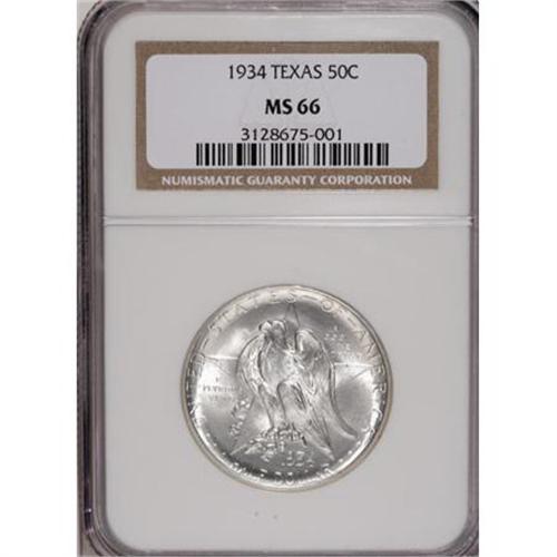 <B>1934 50C Texas MS66 NGC.</B></I> NGC Census: (346/38). PCGS Population (316/38). Mintage: 61,463. Numismedia Wsl. Price for NGC/PCGS coin in MS66: $360. (#9381)<BR><BR><b>Shipping:</b> Coins & Currency (<a target="_blank" href="http://www.heritageauctions.com/common/shipping.php">view shipping information</a>)