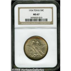 <B>1934 50C Texas MS67 NGC.</B></I> Highly lustrous surfaces display peripheral crimson and gold patina. Sharply struck, and no significant marks. Population: 29 in 67, 0 finer (2/05).