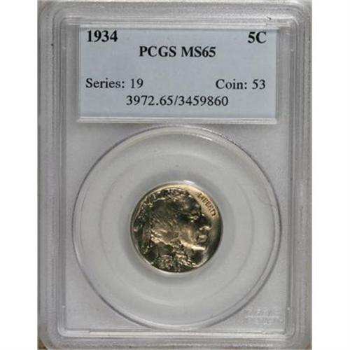 <B>1934 5C MS65 PCGS.</B></I> PCGS Population (448/168). NGC Census: (251/72). Mintage: 20,213,004. Numismedia Wsl. Price for NGC/PCGS coin in MS65: $320. (#3972)<BR><BR><B>Coin Engraver:</B> James E. Fraser<BR><BR><b>Shipping:</b> Coins & Currency (<a target="_blank" href="http://www.heritageauctions.com/common/shipping.php">view shipping information</a>)
