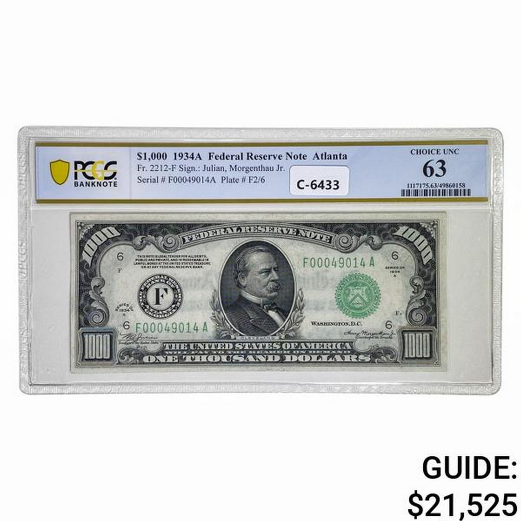1934-A $1,000 FRN ATLANTA, GA PCGS UNC-63