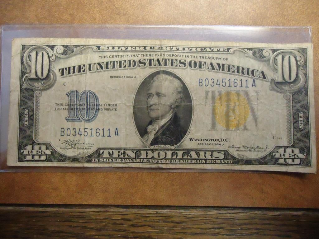 1934-A $10 AFRICA SILVER CERTIFICATE GOLD SEAL