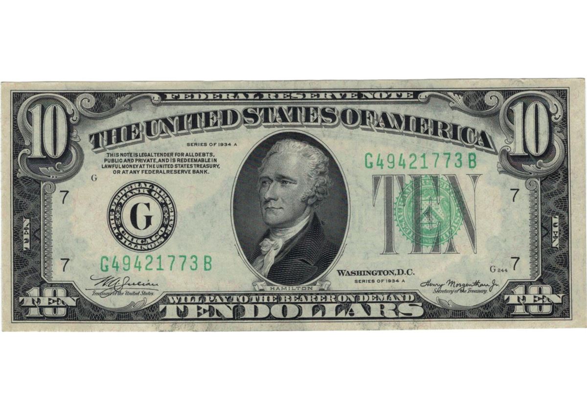 1934-A $10 Choice Circulated Federal Reserve Note.