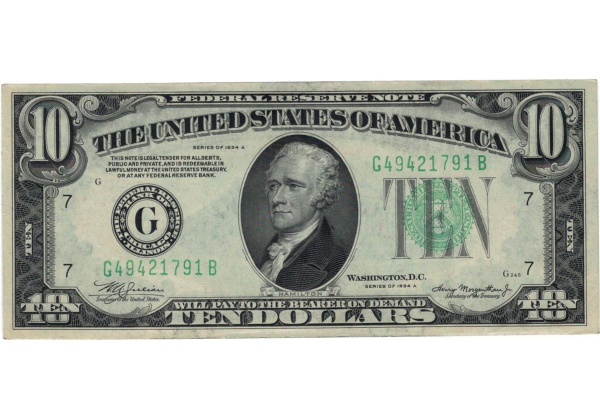 1934-A $10 Choice Circulated Federal Reserve Note.