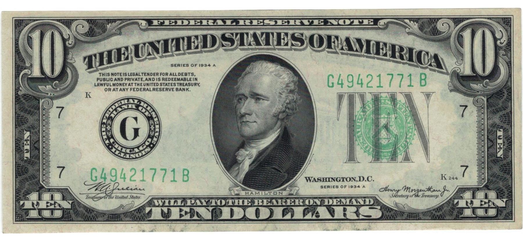 1934-A $10 Choice Circulated Federal Reserve Note.