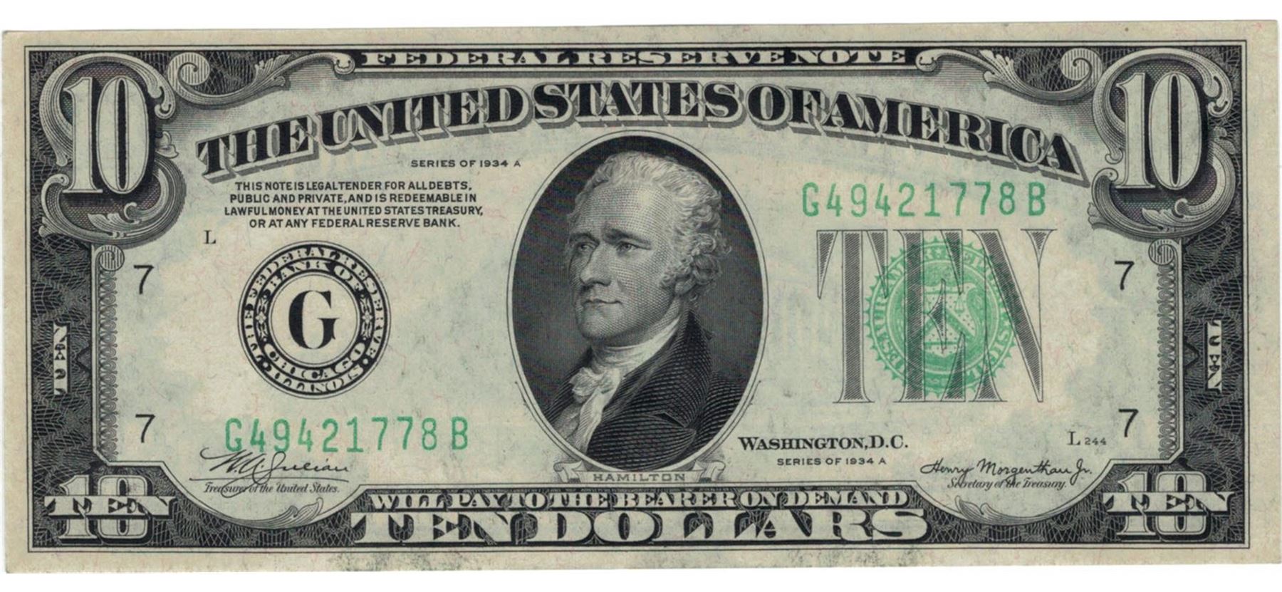 1934-A $10 Choice Circulated Federal Reserve Note.