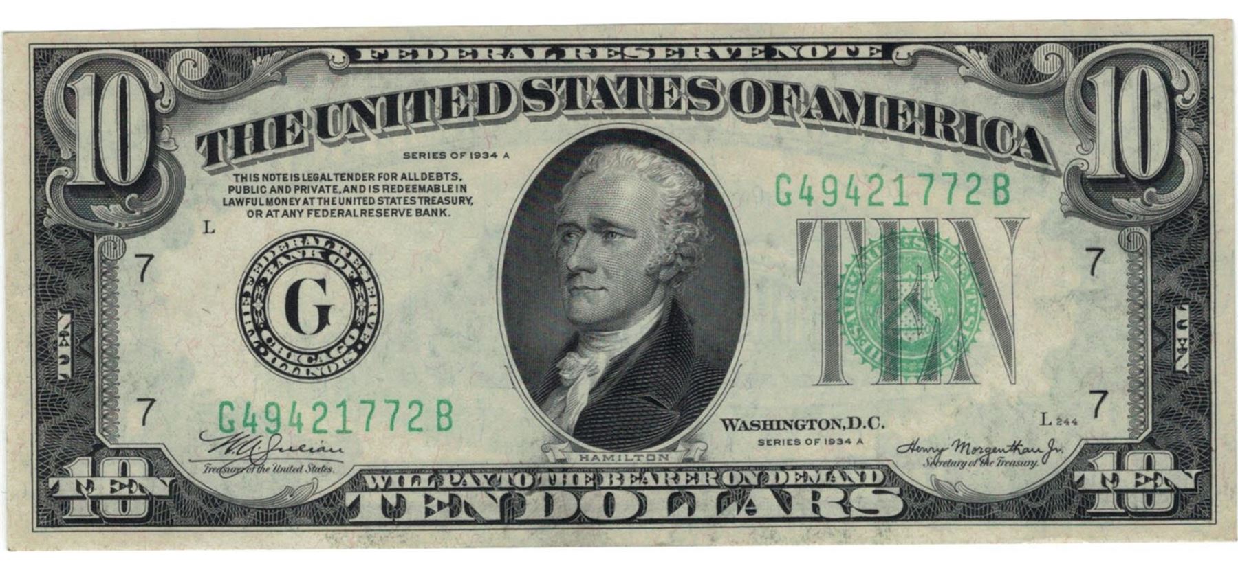 1934-A $10 Choice Circulated Federal Reserve Note.