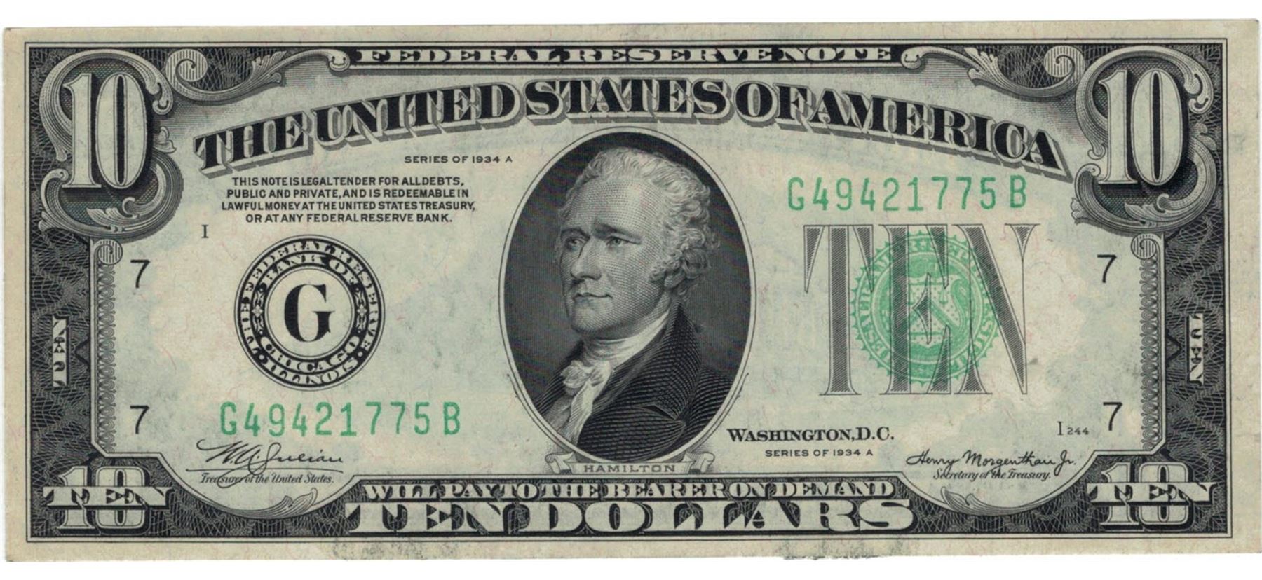 1934-A $10 Choice Circulated Federal Reserve Note.
