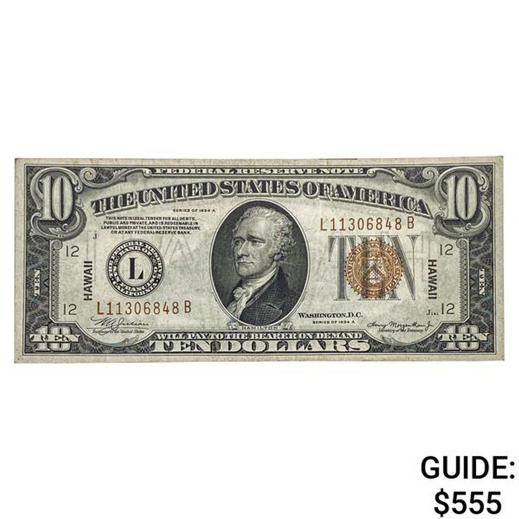1934-A $10 "HAWAII" FRN EXTREMELY FINE