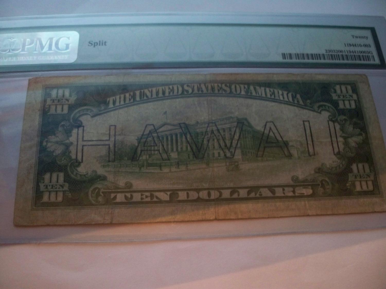 1934-A $10 Hawaii WWII Emergency Issue Note Graded VF-20, Brown Seal