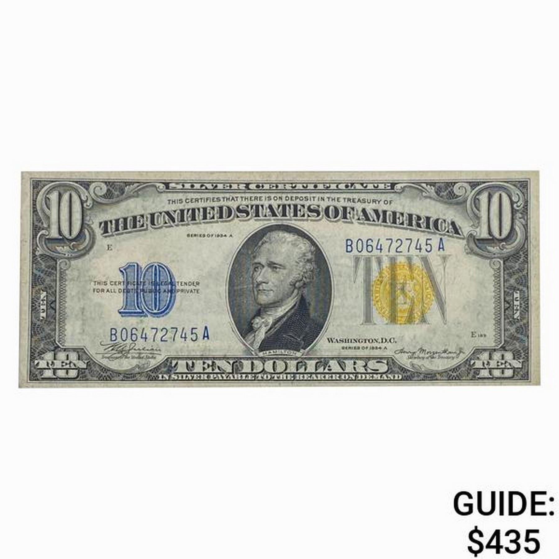 1934-A $10 NORTH AFRICA SILVER CERTIFICATE AU