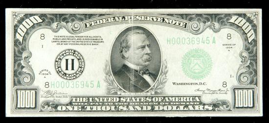 1934-A, $1000 Federal Reserve Note. St. Louis