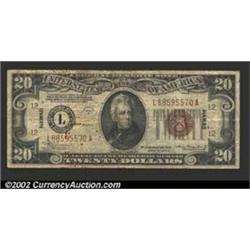 1934-A $20 Hawaii Federal Reserve Note, Fr-2305, Fine. Some rust stains are visible on both sides...