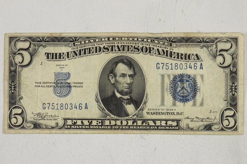 1934-A $5 SILVER CERTIFICATE BLUE SEAL