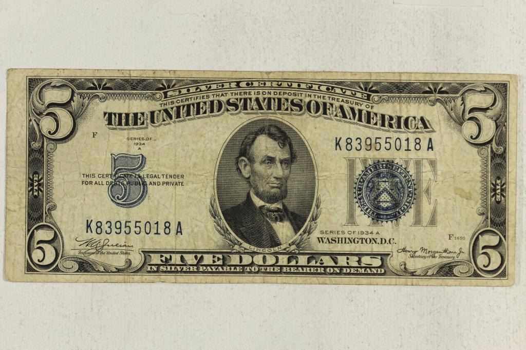 1934-A $5 SILVER CERTIFICATE BLUE SEAL