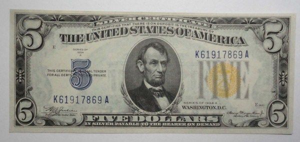 1934-A $5 SILVER CERTIFICATE NORTH AFRICA GEM UNC