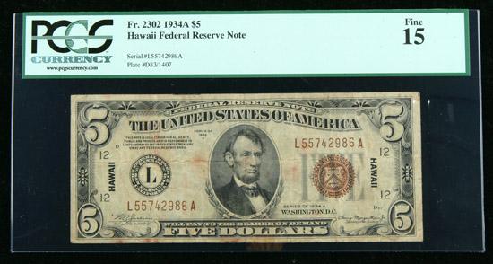 1934-A, $5 World War II Emergency Note. Hawaii. PCGS Fine 15. . Fr-2302.
