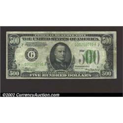 1934-A $500 Federal Reserve Note, Fr-2202-G, VF+. There is a portion of a teller stamp visible on th