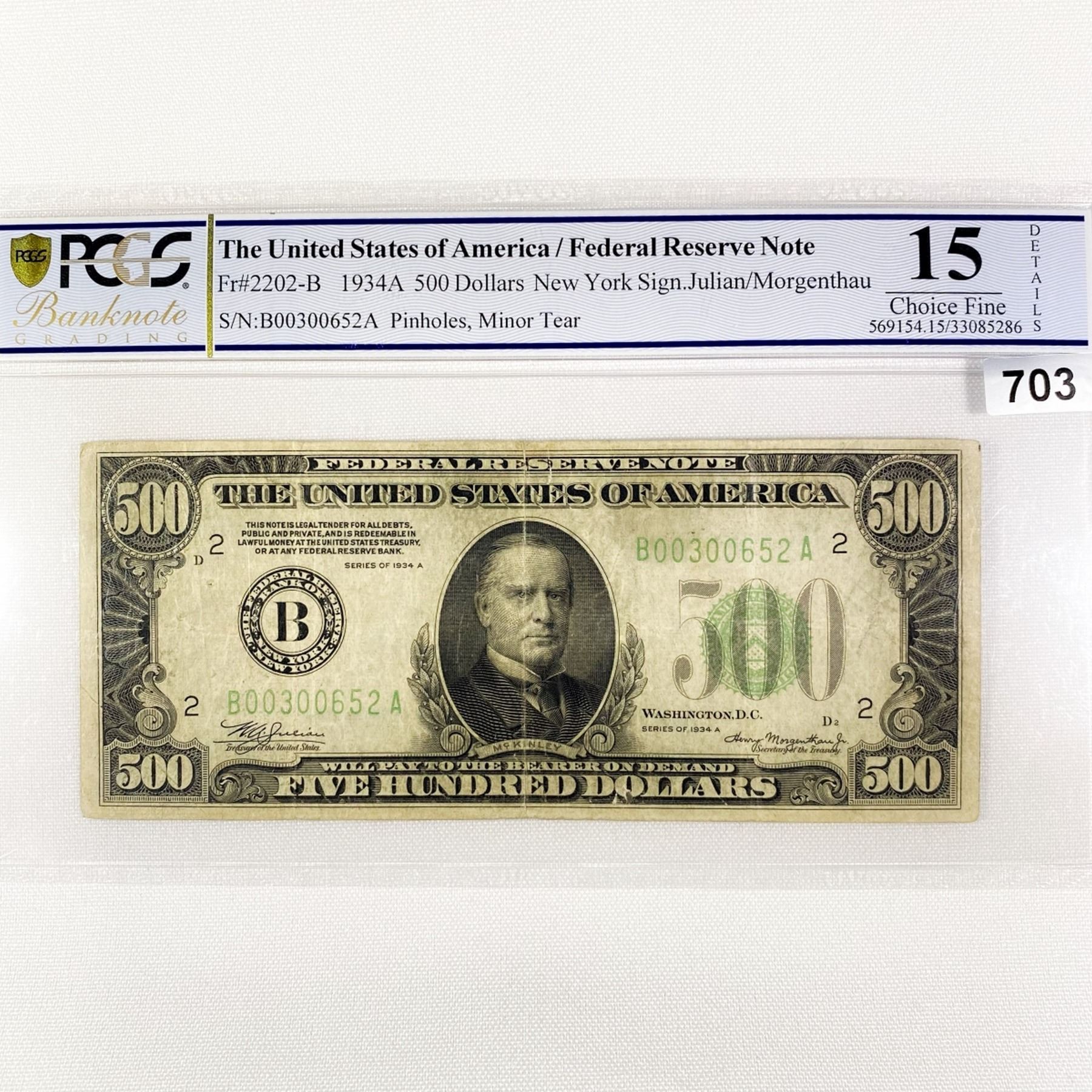 1934 A $500 Five Hundred Fed Res Note PCGS-15