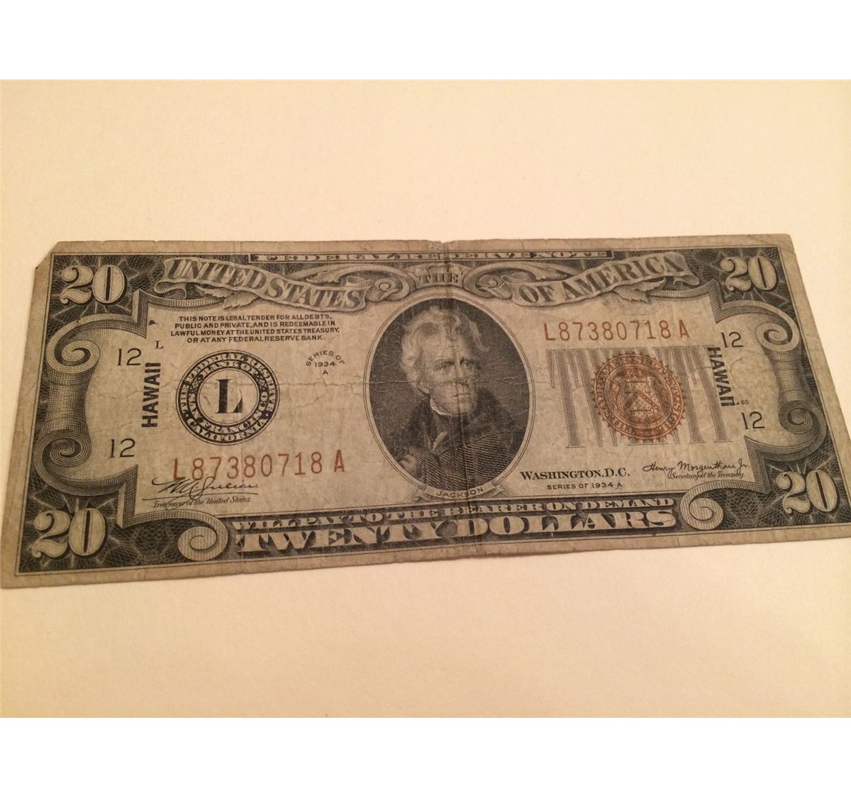 1934-A SERIES $20 WWII HAWAII NOTE