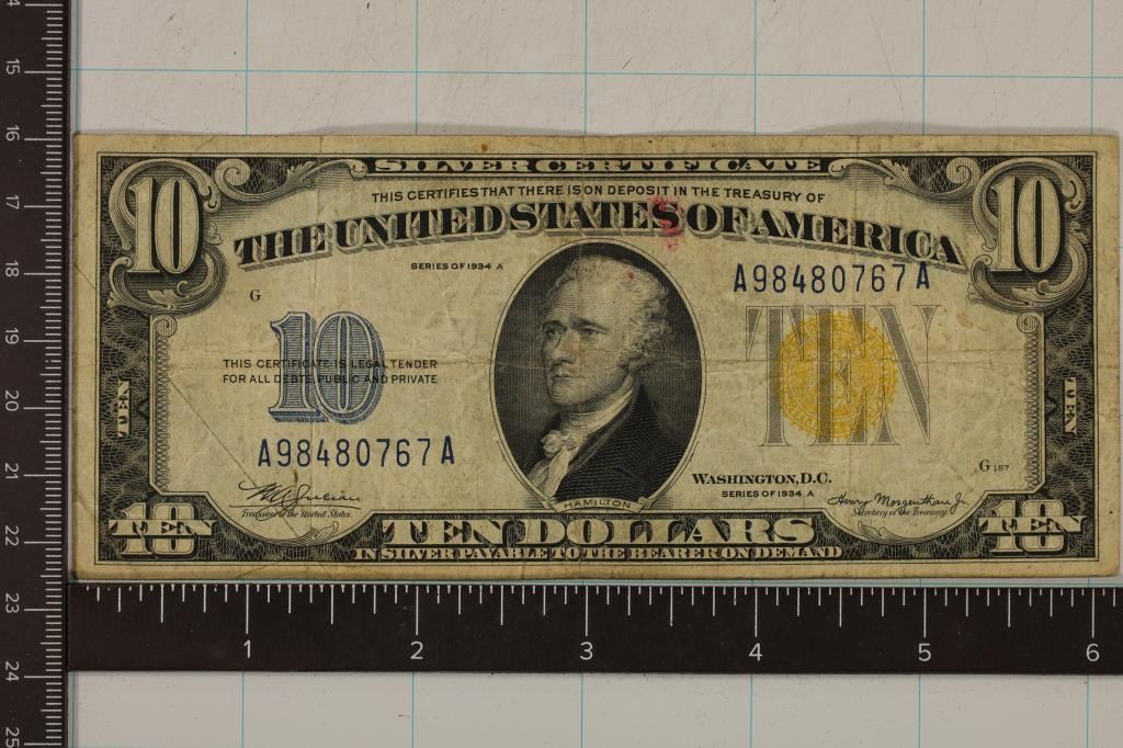 YELLOW SEAL WITH PINK INK ON THE TOP OBVERSE