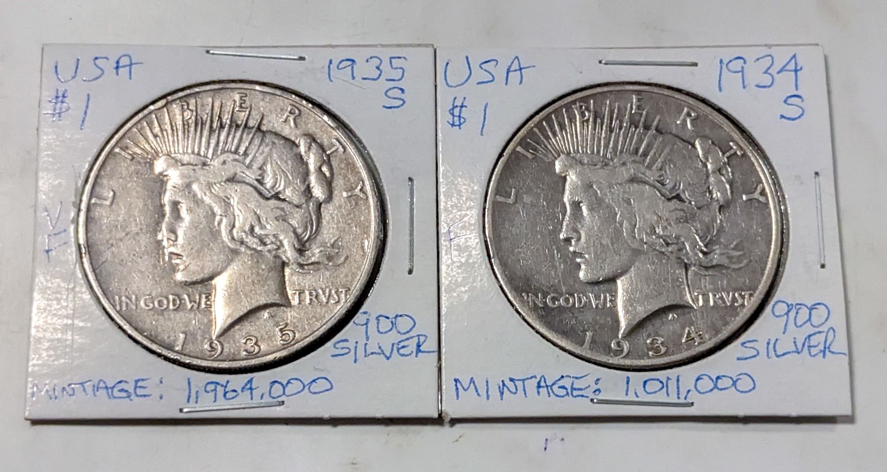 1934 AND 1935 USA PEACE SILVER DOLLARS