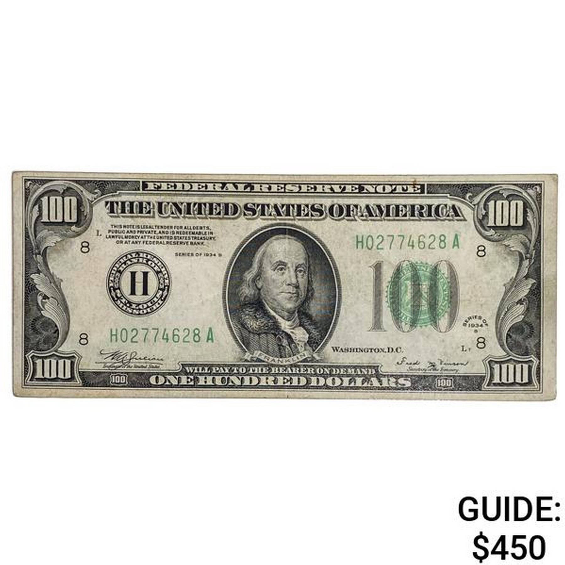 1934-B $100 ONE HUNDRED DOLLARS FRN FEDERAL RESERVE NOTE ST. LOUIS, MO ABOUT UNCIRCULATED