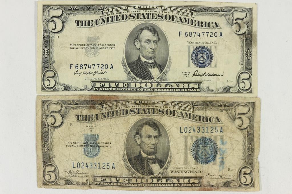 1934-B $ 53-A $5 SILVER CERTIFICATES BLUE SEALS