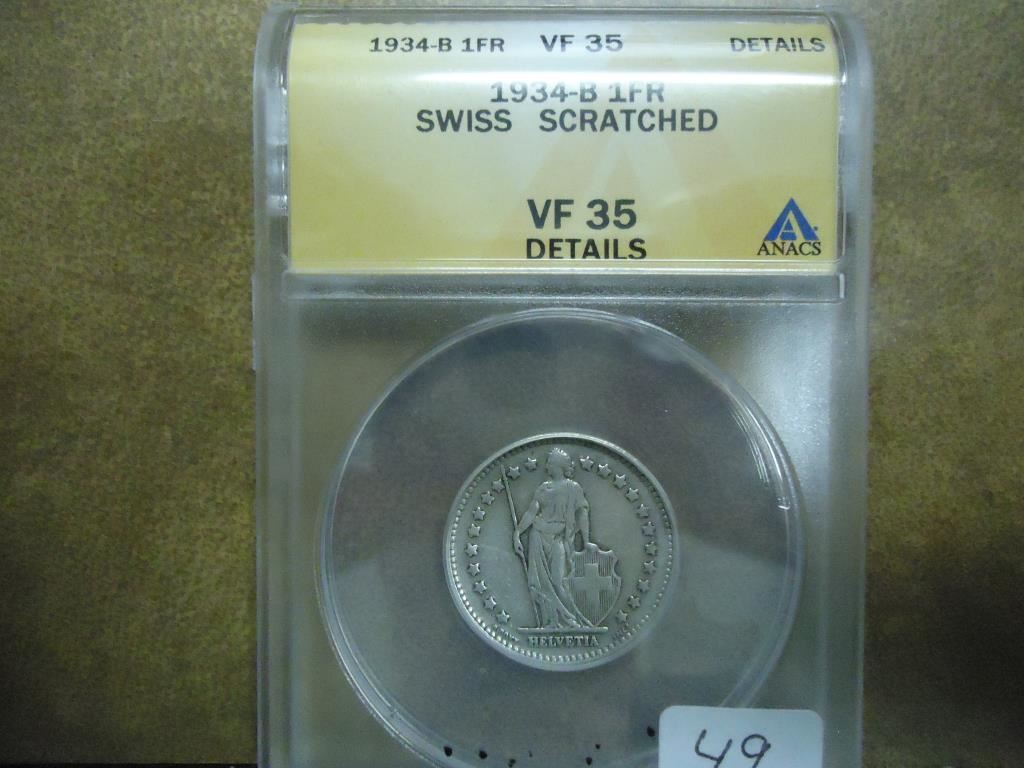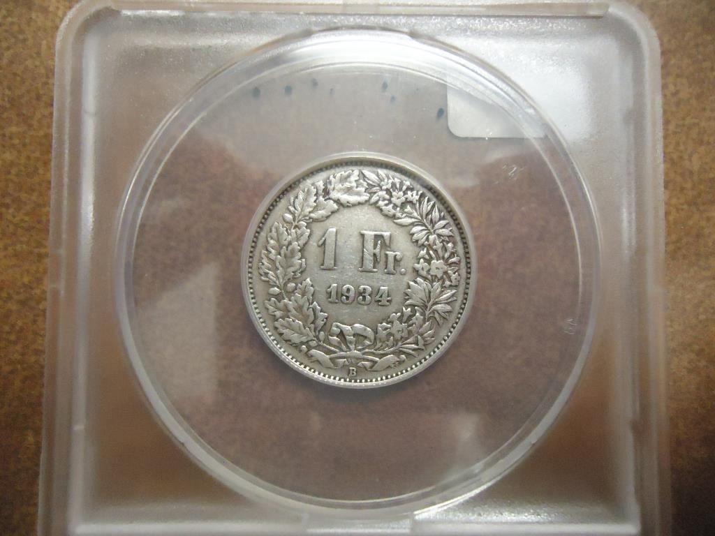 1934-B SWISS SILVER FRANC ANACS VF35 DETAILS