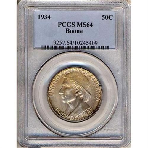 <b>1934 Boone Half Dollar. PCGS graded MS64.</b> A choice example with original, icy white originality underneath toning from impressive surfaces <b>(PCGS # 9257)</b> <i>