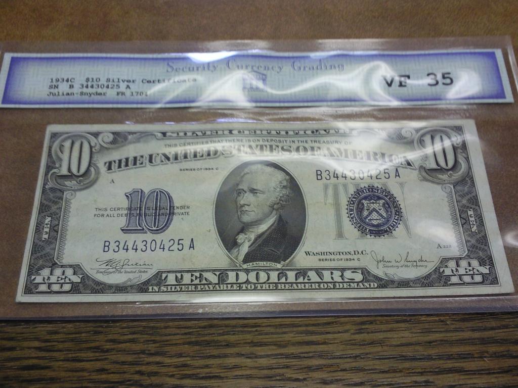 1934-C $10 SILVER CERTIFICATE SCG (VF 35) BLUESEAL