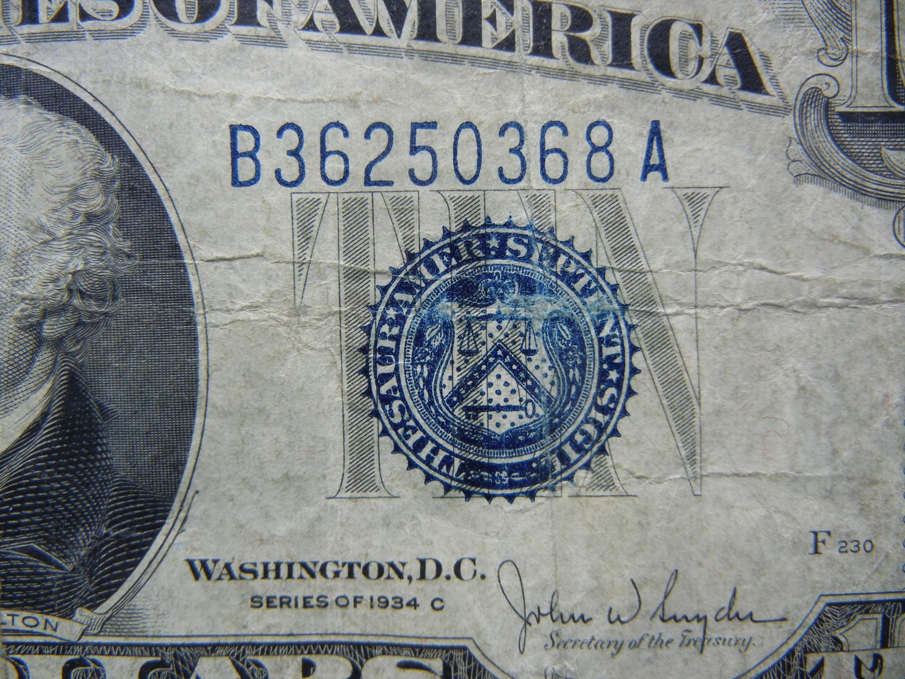 1934-C $10 Silver Certificate. Serial # B35250368A