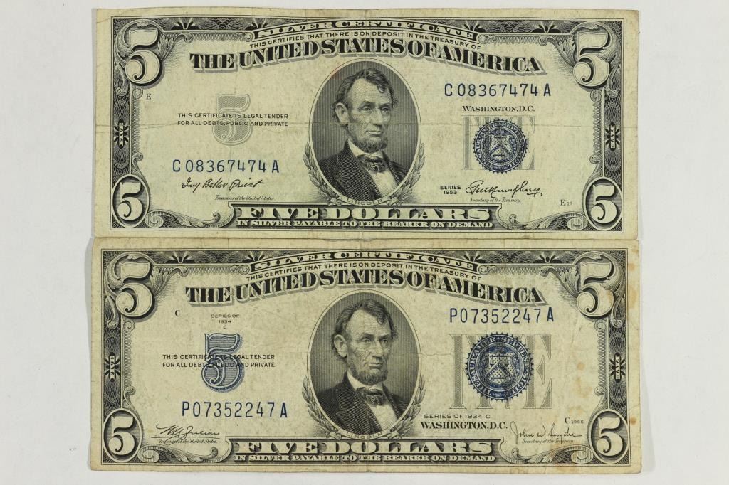 1934-C & 1953 $5 SILVER CERTIFICATES BLUE SEALS