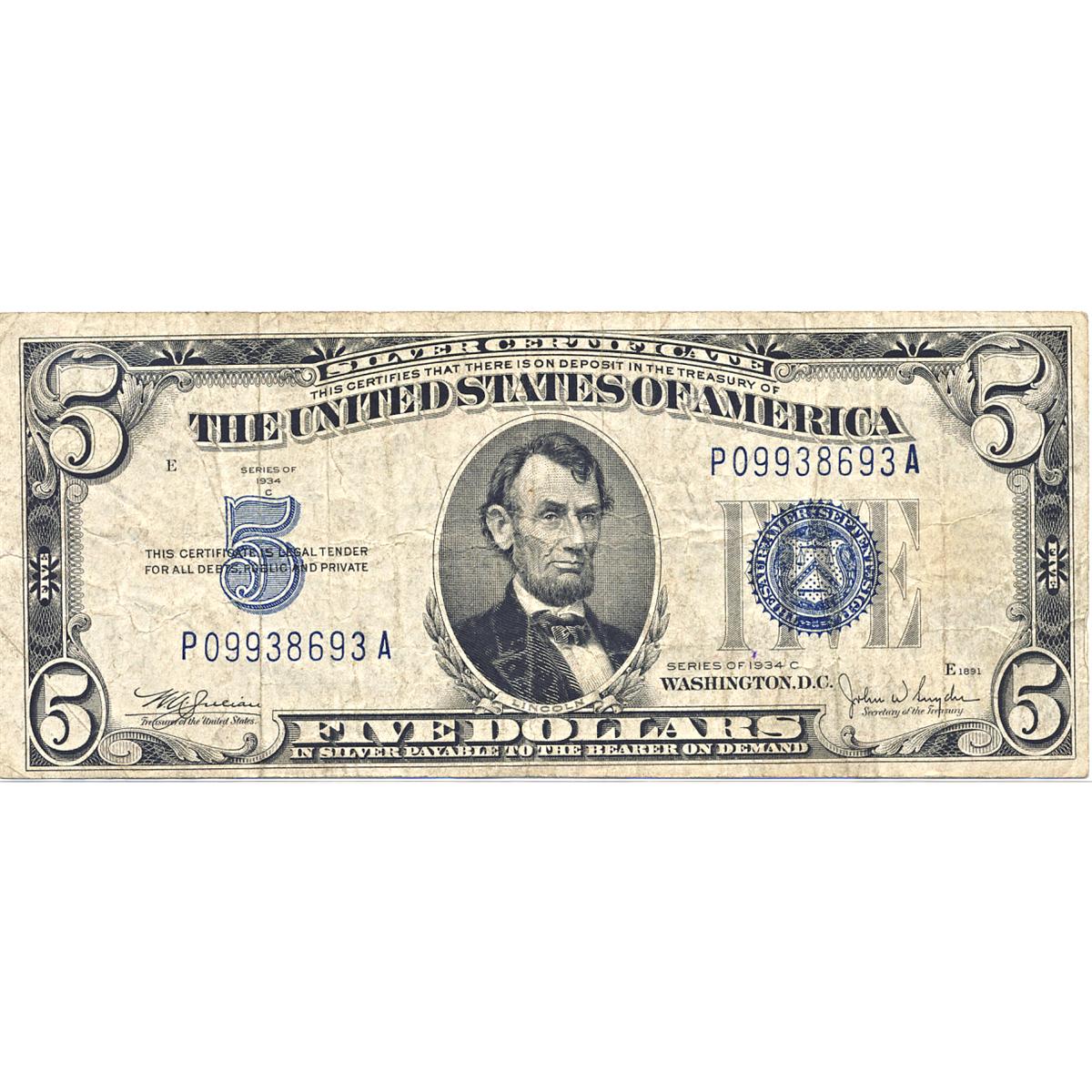 1934-C $5 BLUE SEAL SILVER CERTIFICATE