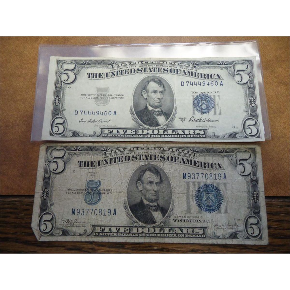 1934-C & 53-A $5 SILVER CERTIFICATES BLUE SEAL