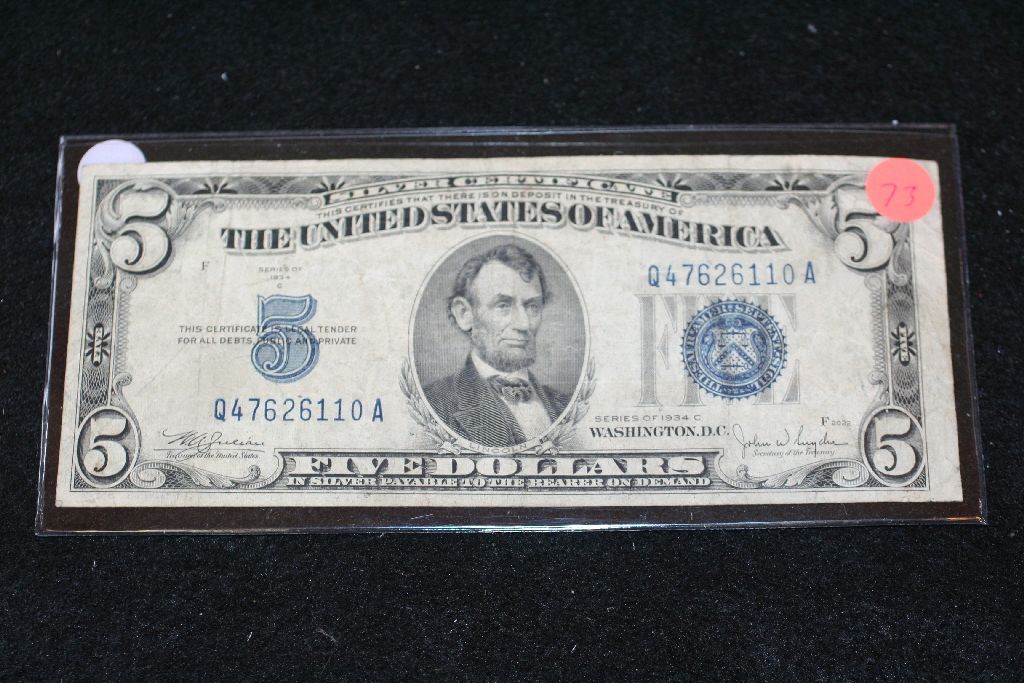 1934-C US Silver Certificate $5, Blue Seal