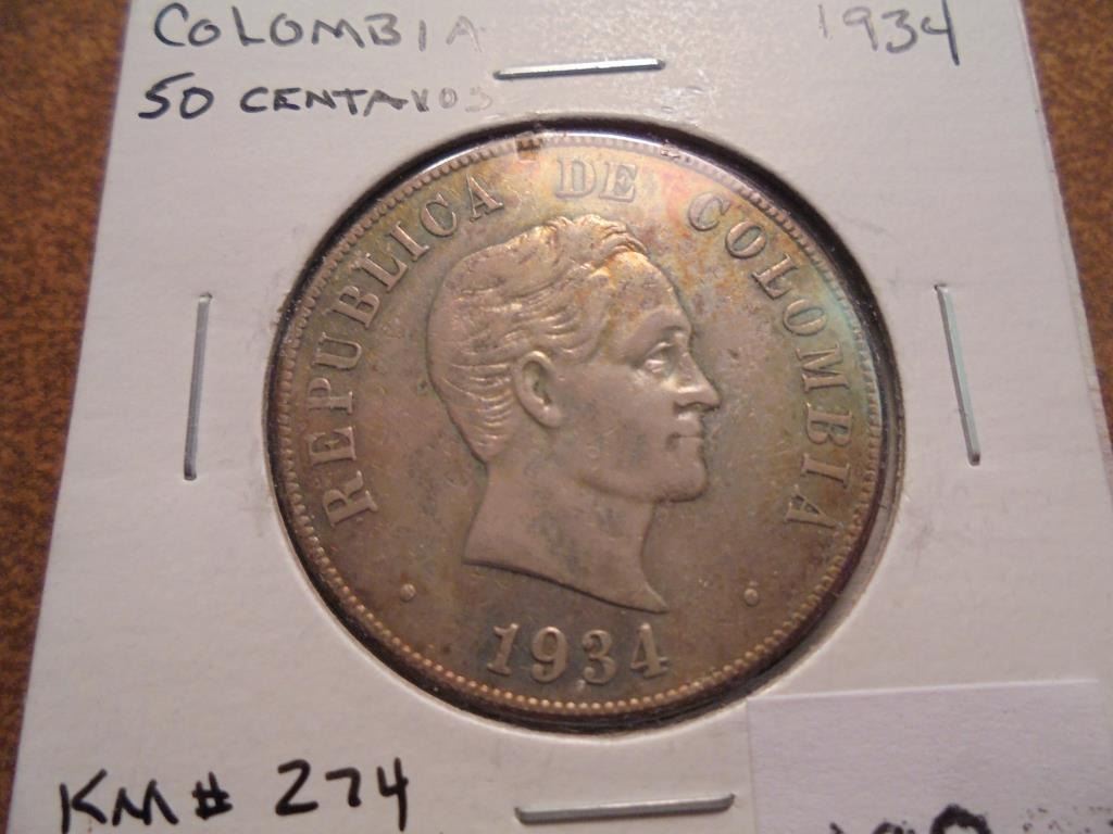 1934 COLUMBIA SILVER 50 CENTAVOS .3617 OZ. ASW
