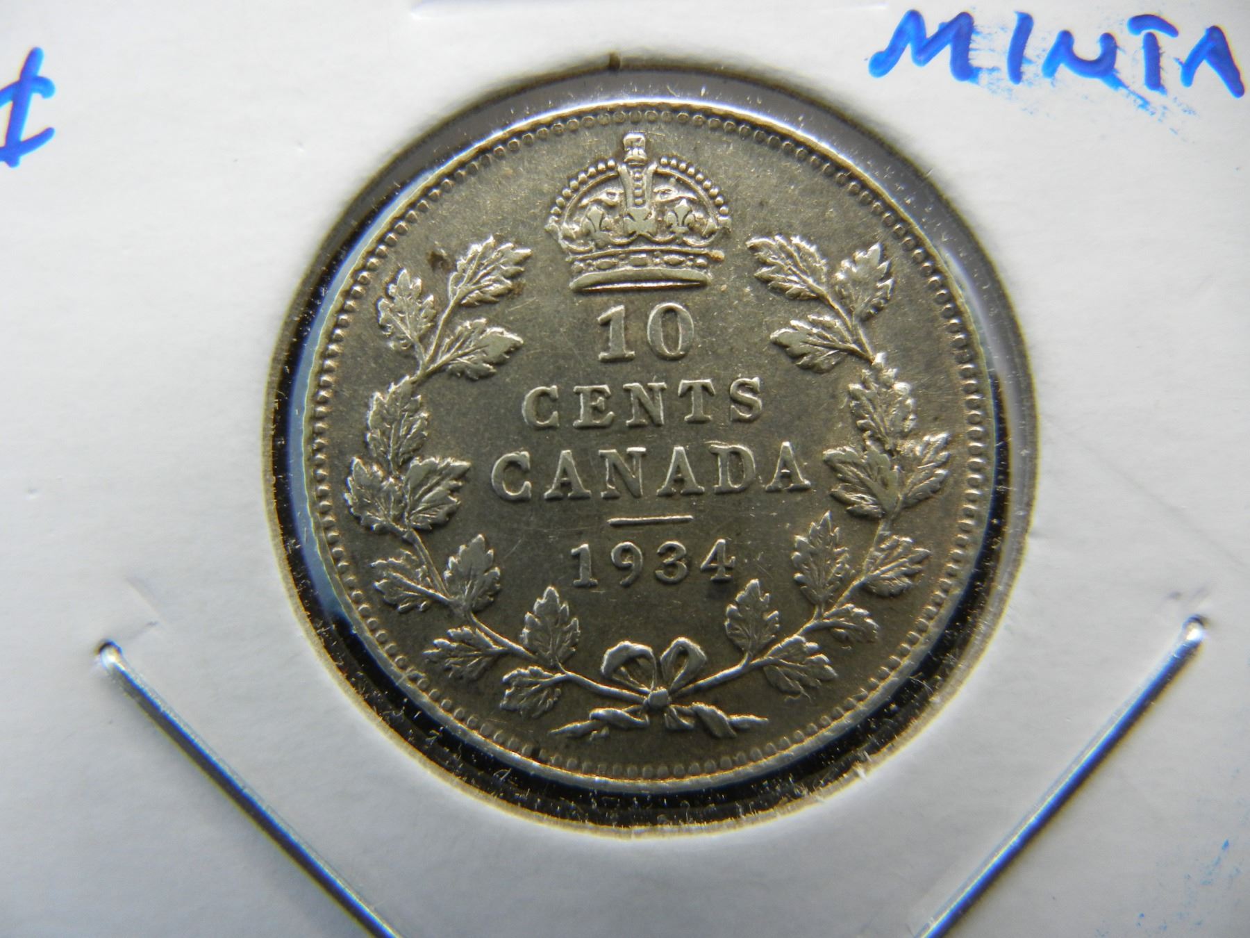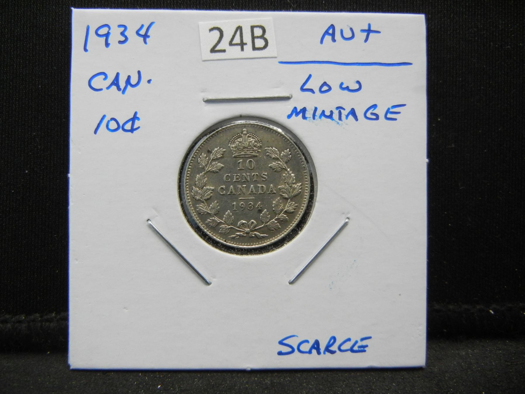 1934 Canada 10c. AU+. Low Mintage. Scarce.